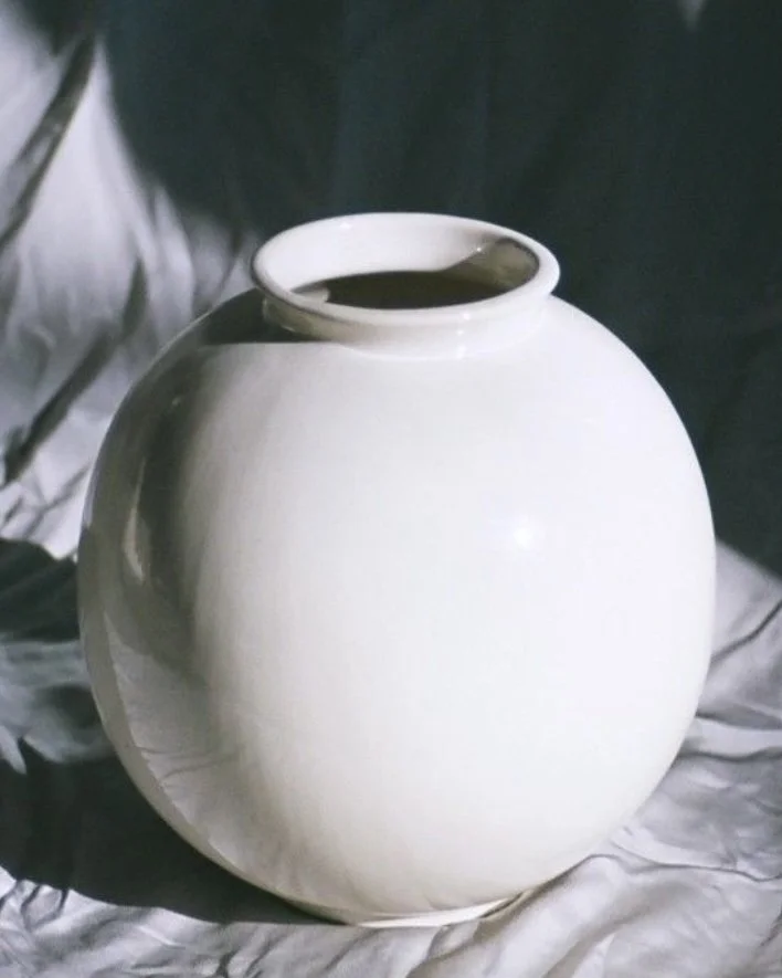 A black and white long exposure photograph of a curved, transparent object against a black background.